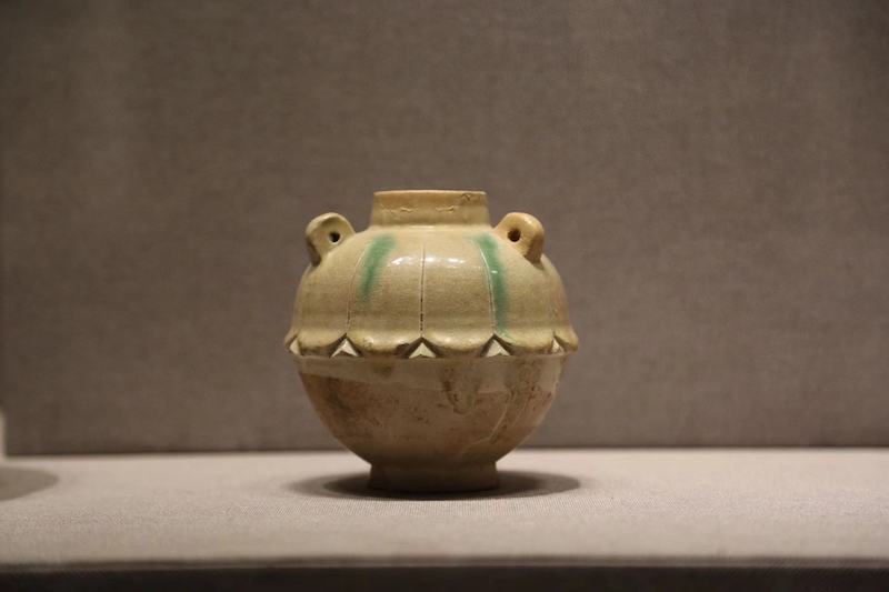 范粹墓葬中的这批白瓷是目前发现有可靠纪年,且年代最早的代表器物,有碗、盘、罐、瓶等多种类型,釉质薄而润,玻璃感较强,但白釉中泛着黄色,釉厚之处还带有一些青色,可见当时的白瓷工艺还处于青白过渡的初级阶段。在这批白瓷中,两件北齐白瓷莲纹罐最为典型,罐身圆润,直口,肩上附有4个可穿绳索的耳系,器物上半部施以白釉,下半部刻有浅浅的莲瓣纹,釉面有细碎开片,微微泛黄。科研人员通过检测进一步发现,北齐工匠在白釉底下薄薄地施了一层化妆土,目的是提高釉面的洁白程度,在白瓷工艺尚不发达的初创年代,此举实在巧妙。