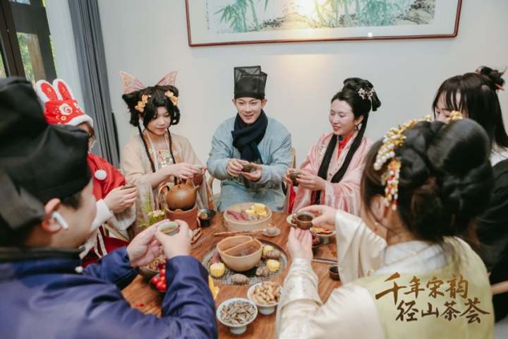 12月17日,“千年宋韵径山茶荟”活动在大径山旅游集散中心、陆羽泉文化主题公园和禅茶第一村同步举行。喫茶赏乐市集、国乐演奏、《梦华录》同款“径山茶”点茶、“遇见陆羽”、插花弄雅、禅修书法和围炉煮茶,七个体验项目吸引了不少游人前来驻足打卡。本次活动通过游园集点进行互动打卡,以文化性、趣味性、互动性的径山茶生活体验和动听的宋韵国乐演奏,使游客与表演者、主持人零距离接触,深入了解径山茶品牌与禅茶文化,增加游客的参与度,在推广径山茶品牌的同时带动大径山景区的文旅体验。