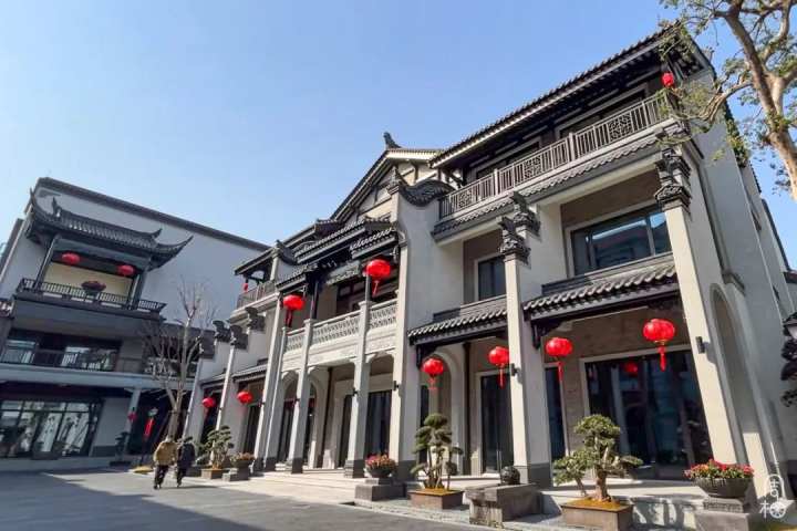 若是细细研读街角的每个装饰雕刻,便可见“河曲阳石雕、东阳木雕、徽晋砖雕、川西灰雕、河北铜雕”五大非遗古法雕刻工艺,精心设计分布藏于街院的各个角落。园林绿化,移步换景,目不暇接。