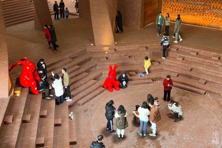 当然,除了领证打卡外,礼堂在平时也可承载包括成人礼、鹿鸣宴、特色婚礼、音乐会及艺术展览等多种类型活动。今后,此处还将设立民政局,成为极具浪漫的领证打卡地之一。今年春节期间,礼堂内还特意设置了兔子卡通装置供市民打卡。