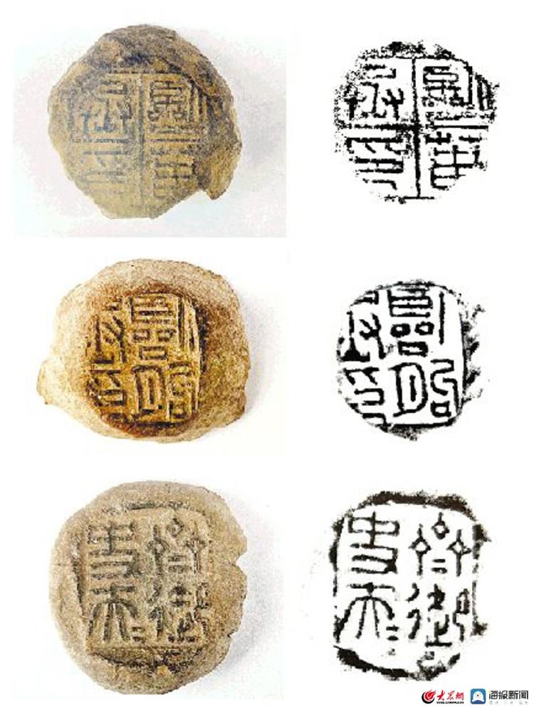三枚封泥从上至下分别为:临淄丞印封泥临朐丞印封泥齐御史大夫封泥均为济南市博物馆藏