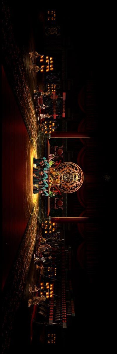 《遇见·楚庄王》的全息影像画面中,久远的楚国历史凸显出强大的艺术感染力——楚巫的神秘,楚舞的优雅,楚歌的委婉汇聚成楚文化的神奇和瑰丽;楚国将士金戈铁马,楚宫歌女身姿婀娜,火神凤凰神奇梦幻同样令人印象深刻,而经过3D建模后呈现的编钟、虎座凤架鼓和楚剑等楚文化代表性文物则融入剧情之中,有了灵魂且更显瑰丽。