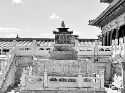 故宫乾清宫前的东西两侧,各有一座铜制的亭式建筑,均矗立在二层石台之上。两座建筑的造型和尺寸完全相同,且为紫禁城里体量最小的宫殿,边长仅约1米、总高仅约1.4米。其中,乾清宫东侧的宫殿称为“江山”殿,西侧的宫殿称为“社稷”殿,合称为“江山社稷金殿”。据《大清世祖章皇帝实录》记载,顺治十三年(1656)五月,顺治帝下令安设江山、社稷神位于乾清宫前,并派遣官员祭祀。以上说明,江山社稷金殿是古代帝王用于祈求长久“执掌天下”的祭祀性建筑。