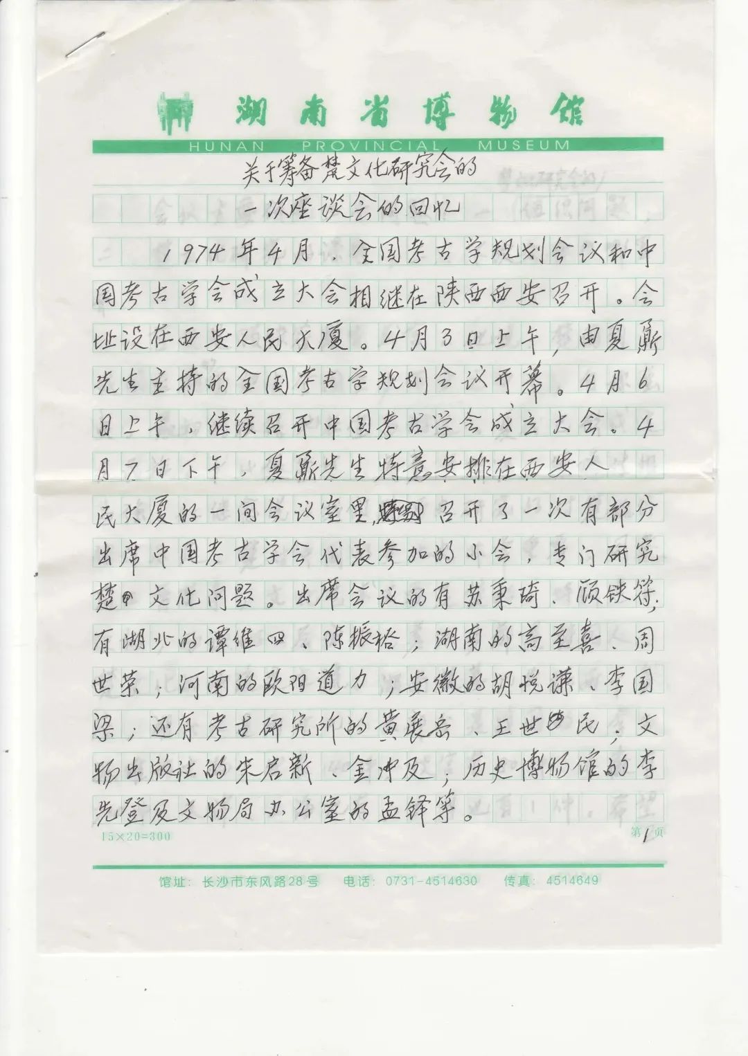 高至喜《关于筹备楚文化研究会的一次座谈会的回忆》手稿(图源:湖南考古)