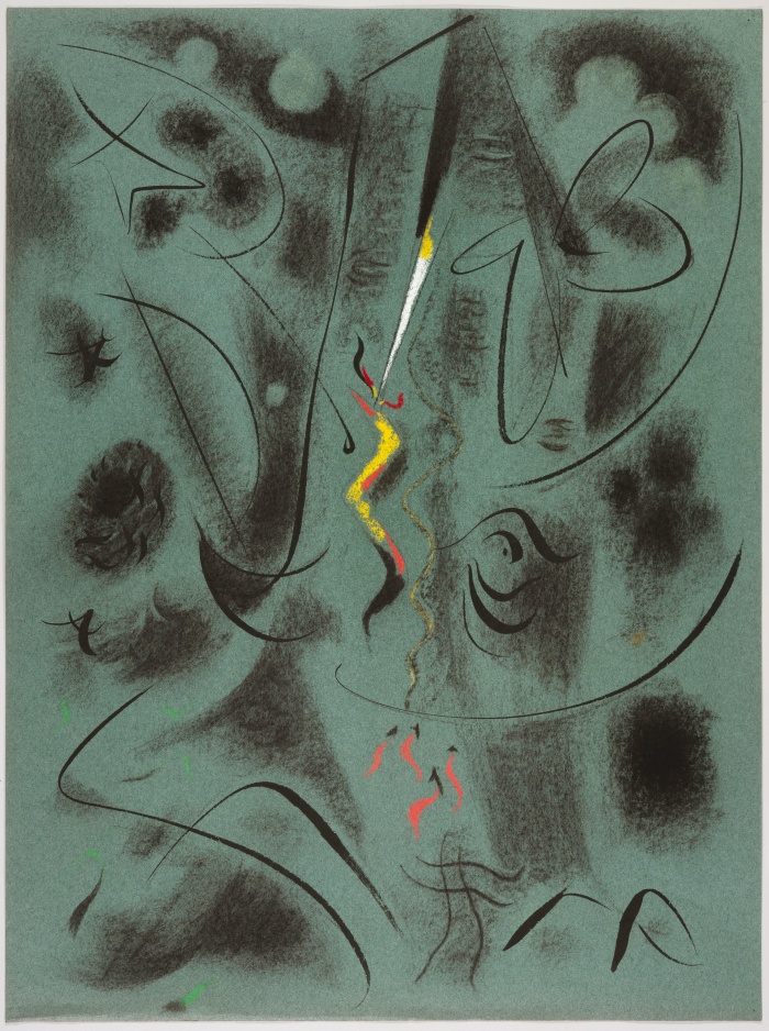安德烈·马松,遭雷击的树,1945年,炭条、墨水和粉彩绘于绿色纸上,60.8×45.5厘米©巴黎,蓬皮杜中心,法国国家现代艺术博物馆-工业设计中心