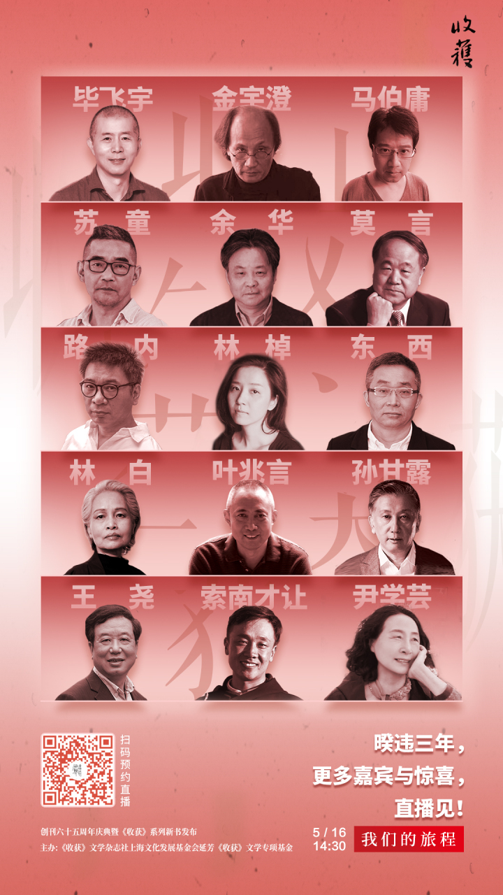 5月16日14:30,“我们的旅程”《收获》创刊六十五周年庆典暨《收获》系列新书发布将在上海举行。