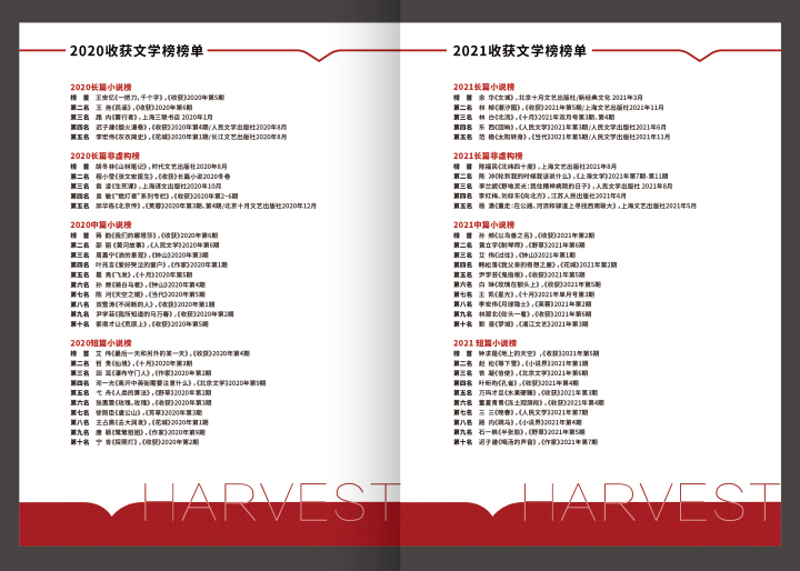 王尧、马伯庸、哲贵、石一枫、弋舟、孙频、周嘉宁、董夏青青、索南才让、葛亮、王占黑、黄立宇、林棹、三三、叶昕昀、丁颜、武茳虹等中青年优秀作家汇聚在《收获》的大旗下。