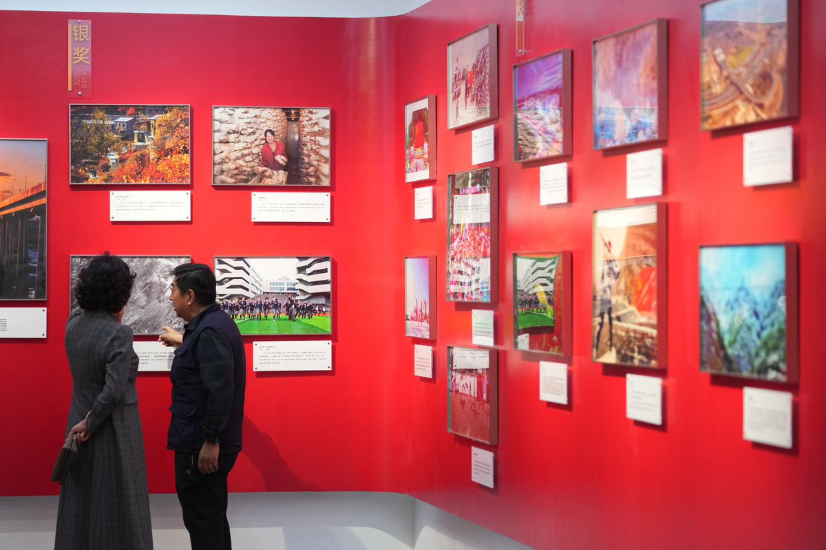 5月31日,参观者观看展出的获奖作品。崔峻摄