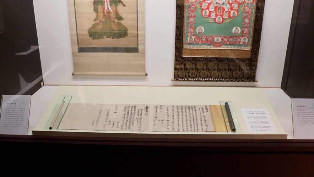 近日,记者在三井寺见到了“越州都督府过所”“尚书省司门过所”等唐代珍贵文件。据三井寺第164代住持福家俊彦介绍,三井寺历史上多次遭到焚毁,与圆珍相关的大部分文物都已损毁丢失,两封“过所”却历时千年保存至今,堪称奇迹。