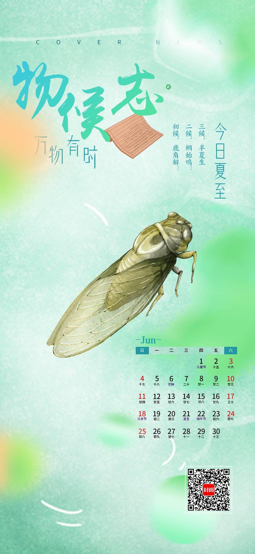 “雨砌蝉花粘碧草,风檐萤火出苍苔。”当耳边的蝉鸣蛙声愈发明显,拂过脸庞的微风也夹杂着燥热的温度,说明此时已进入了炎热的仲夏。6月21日,二十四节气之一的夏至,如期而至,宣告着将迎来酷暑。