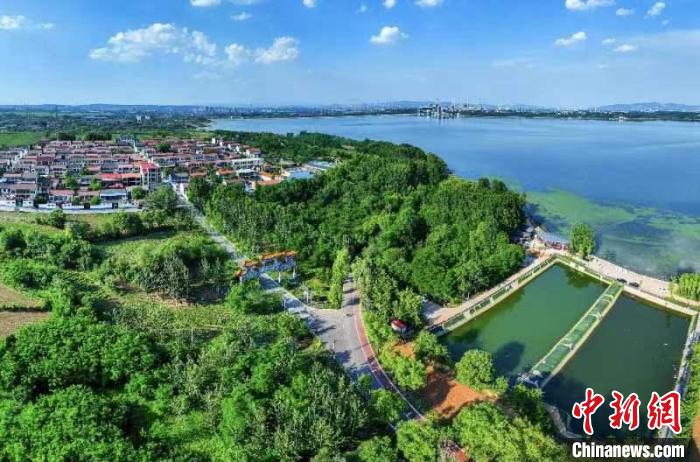 图为航拍漳泽湖畔小南村。 李红卫摄