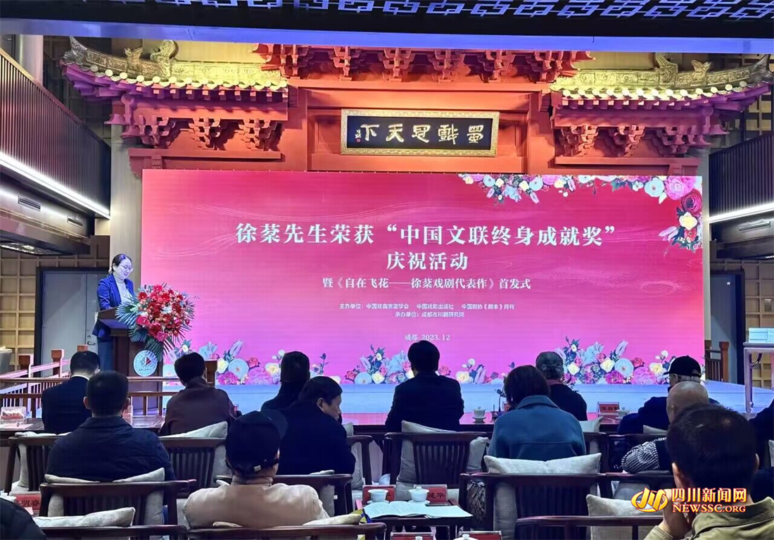 四川新闻网-首屏新闻成都12月2日讯(记者何佳欣摄影报道)12月2日,“徐棻荣获‘中国文联终身成就奖’庆祝活动暨《自在飞花——徐棻戏剧代表作》首发式”在成都市悦来茶园举行。