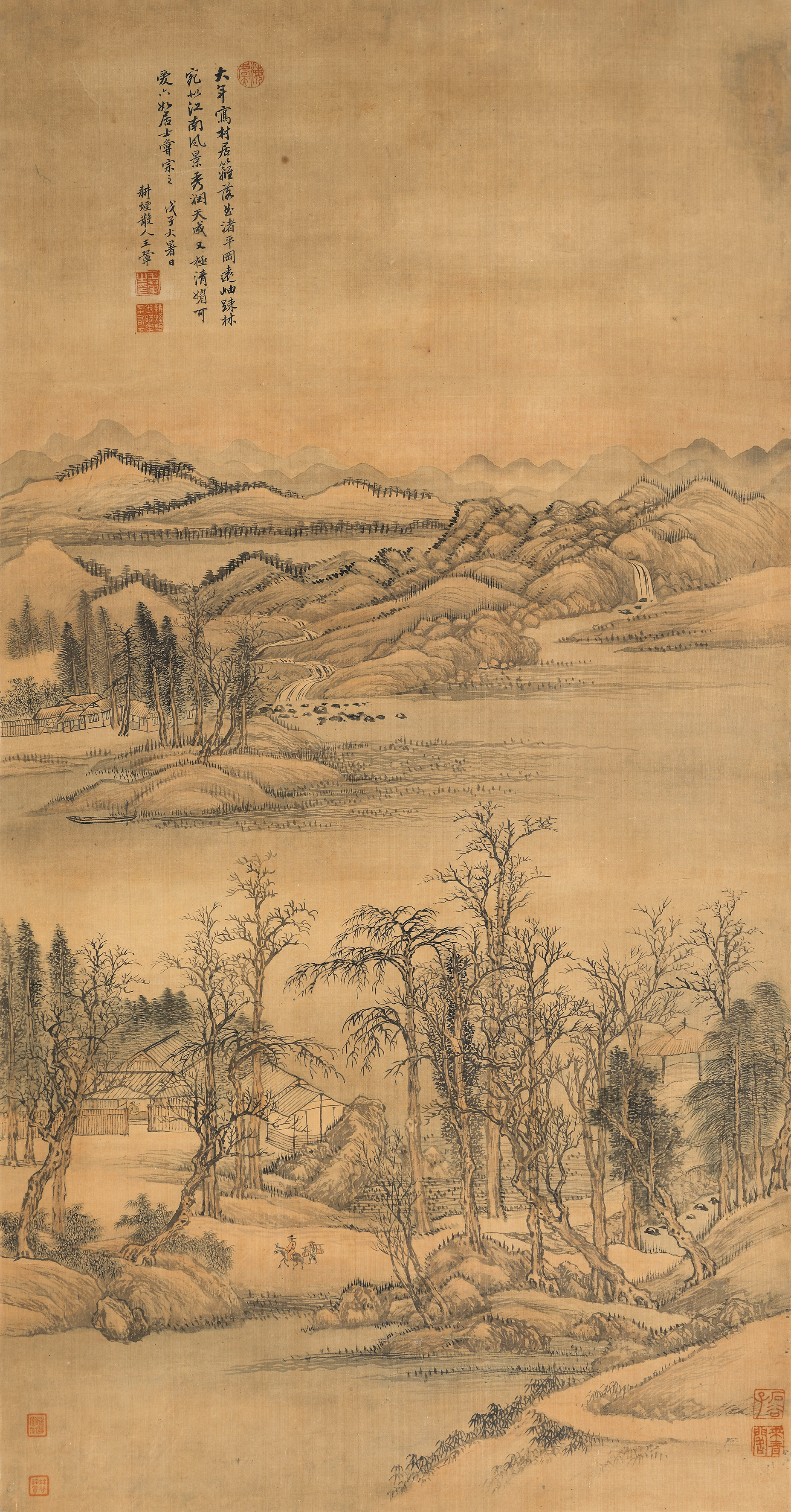清 王翚 仿六如居士山水 绢本设色 87.5cm×46cm