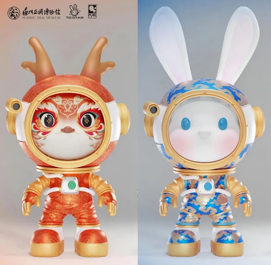 本月初,嫦娥六号探测器发射成功,中国探月工程官方IP形象“兔星星”的最新版本惊艳亮相。而这个龙年限定款“兔星星”的纹样元素,就来自苏州丝绸博物馆馆藏一级文物——褐色四合云纹暗花缎白鹇织补女衫,此次IP联动,仅仅是苏州丝绸博物馆的合作案例之一。
