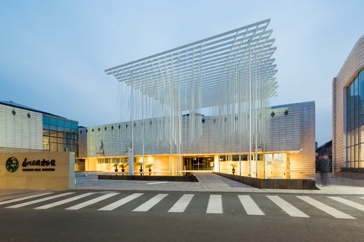 作为中国第一座丝绸专业博物馆,苏州丝绸博物馆于1989年创建,1991年落成开放,2016年提升改造。现占地9500平方米,展陈面积4000平方米,设有历史馆、现代馆、少儿科普馆、桑梓苑、丝织机械陈列室、钱小萍丝绸文化艺术馆六大展区。