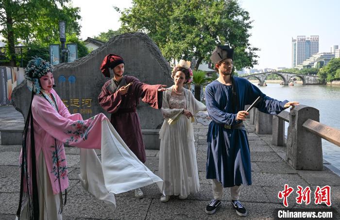 登上拱宸桥附近的码头,“新马可·波罗”们走进了桥西历史文化街区。在这里,他们体验了国风主题巡游、戏曲表演等,还走进了杭州Homestay“运河人家”吴理人民俗艺术馆以及觅会Mystery,学习中国画、聆听运河故事,感受大运河人文生活的江南烟火气。