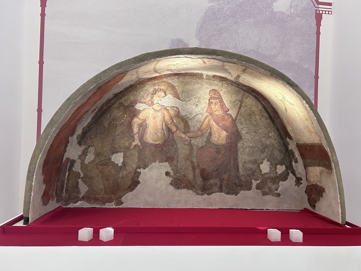 这是“描绘珀耳修斯和安德罗墨达的彩绘石膏壁画”(真品)(6月13日摄)。新华社记者张玉洁摄