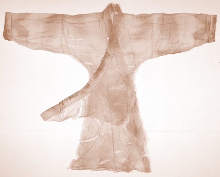 素纱单衣被誉为西汉时期纺织技术的巅峰之作,也是目前最早、最薄、最轻的服装,出土于马王堆一号汉墓,也就是辛追墓。据史料记载,辛追是西汉长沙国丞相利苍的妻子,去世时年约50岁,其生活的年代距今2200多年。