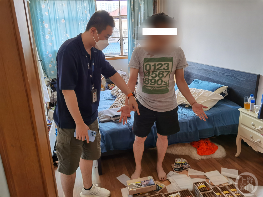 ▲嫌疑人承认雪茄系非法销售。图片来源/上海警方