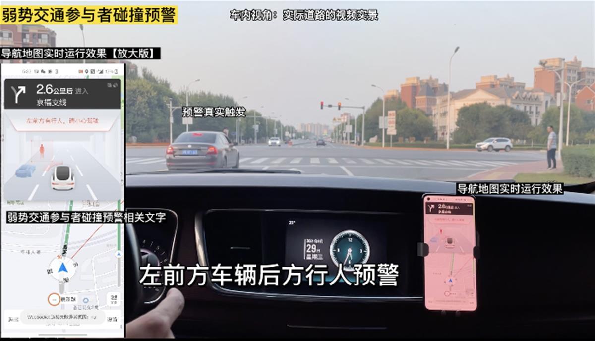 在这样的效果背后,是参与襄阳车联网先导区建设的腾讯等企业探索实践的泛V2X技术能力。据了解,腾讯泛V2X的提出,是为了解决现有车路协同面临渗透率低以及C端用户触达渠道少等问题,并能充分利旧已有道路基础设施,节省道路升级改造成本。只需要在手机上下载一个客户端,就能体验到丰富的车联网应用场景。极目新闻记者在襄阳市人民路振华路交叉口前往人民路长虹路交叉口的过程中,打开手机客户端,在手机上就显示出前方红绿灯的读秒数,在侧面盲区突然有车辆超车时,也会有语音提示:请注意盲区车辆。