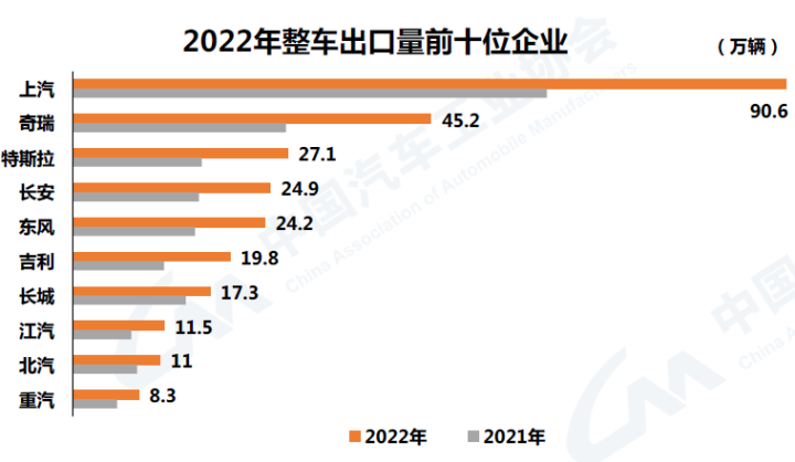 自2021年汽车出口突破200万辆后,过去一年又是丰收的一年。
