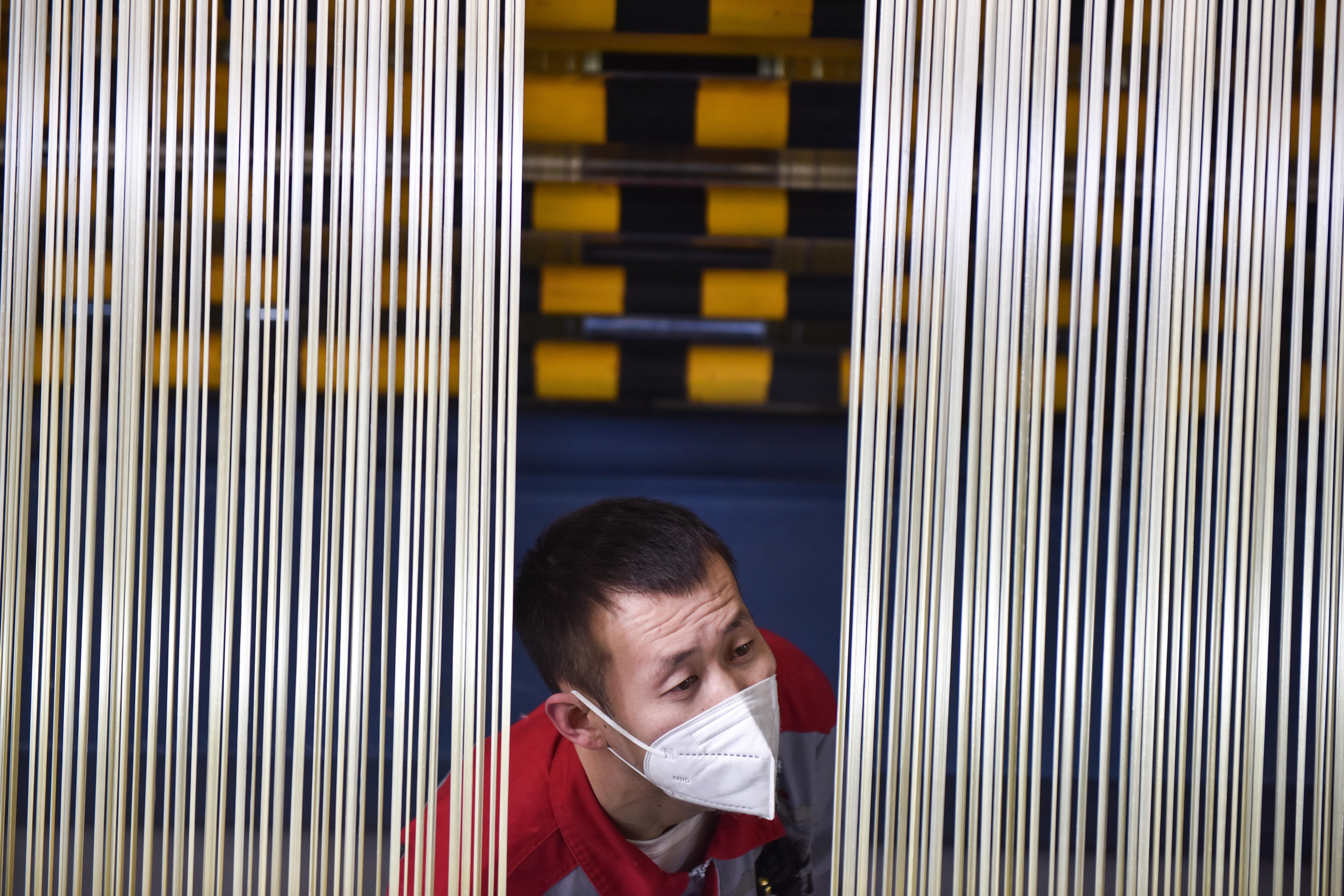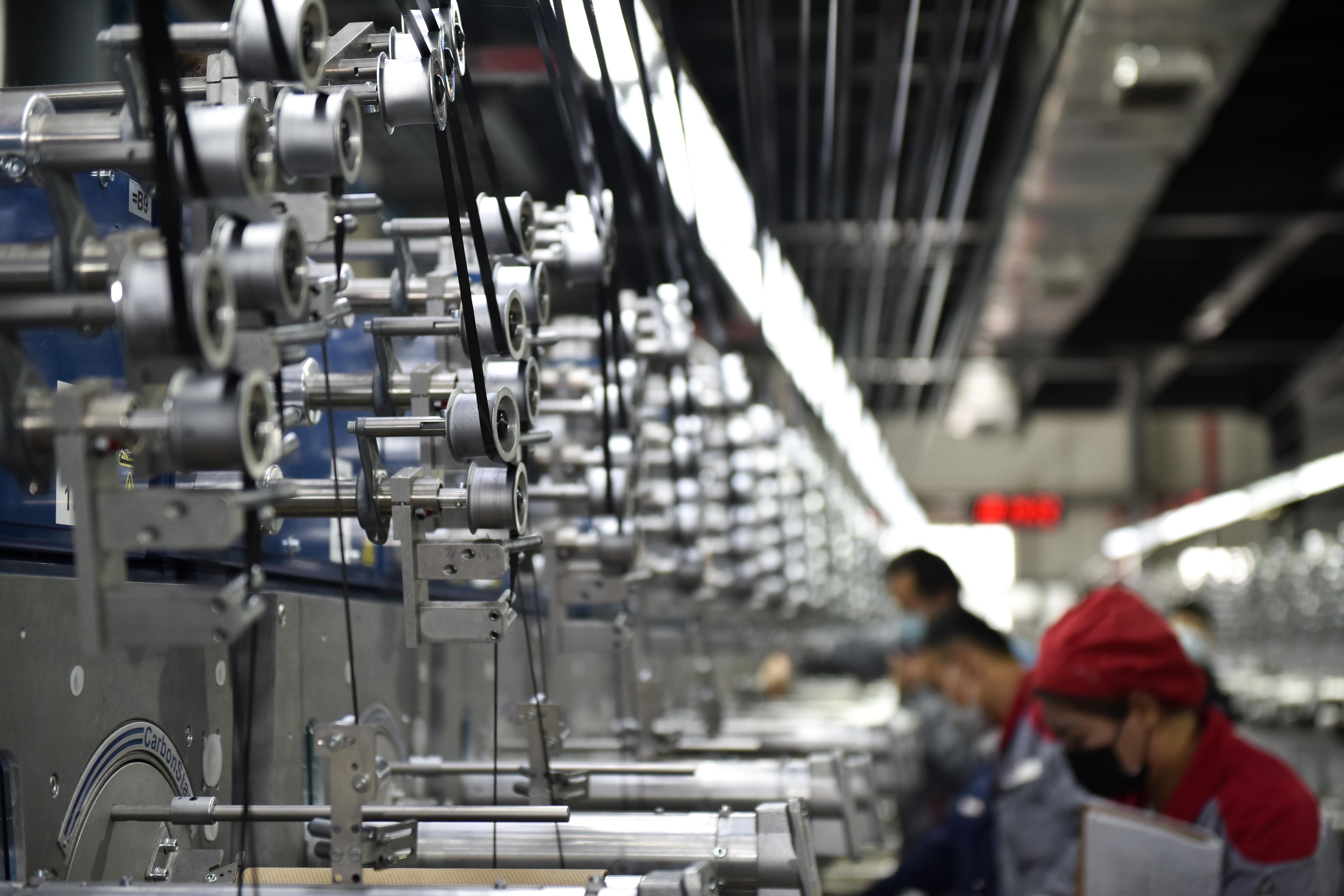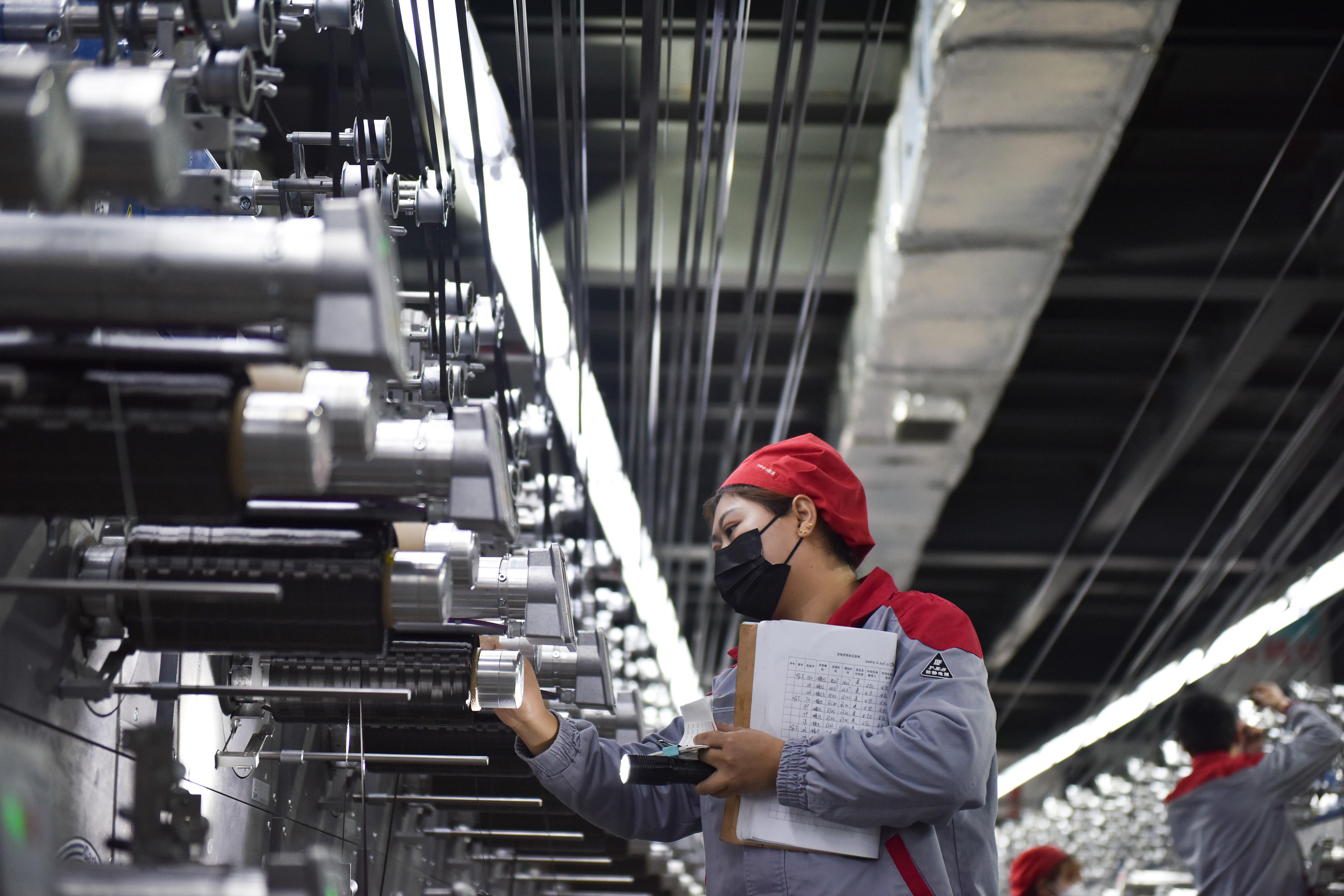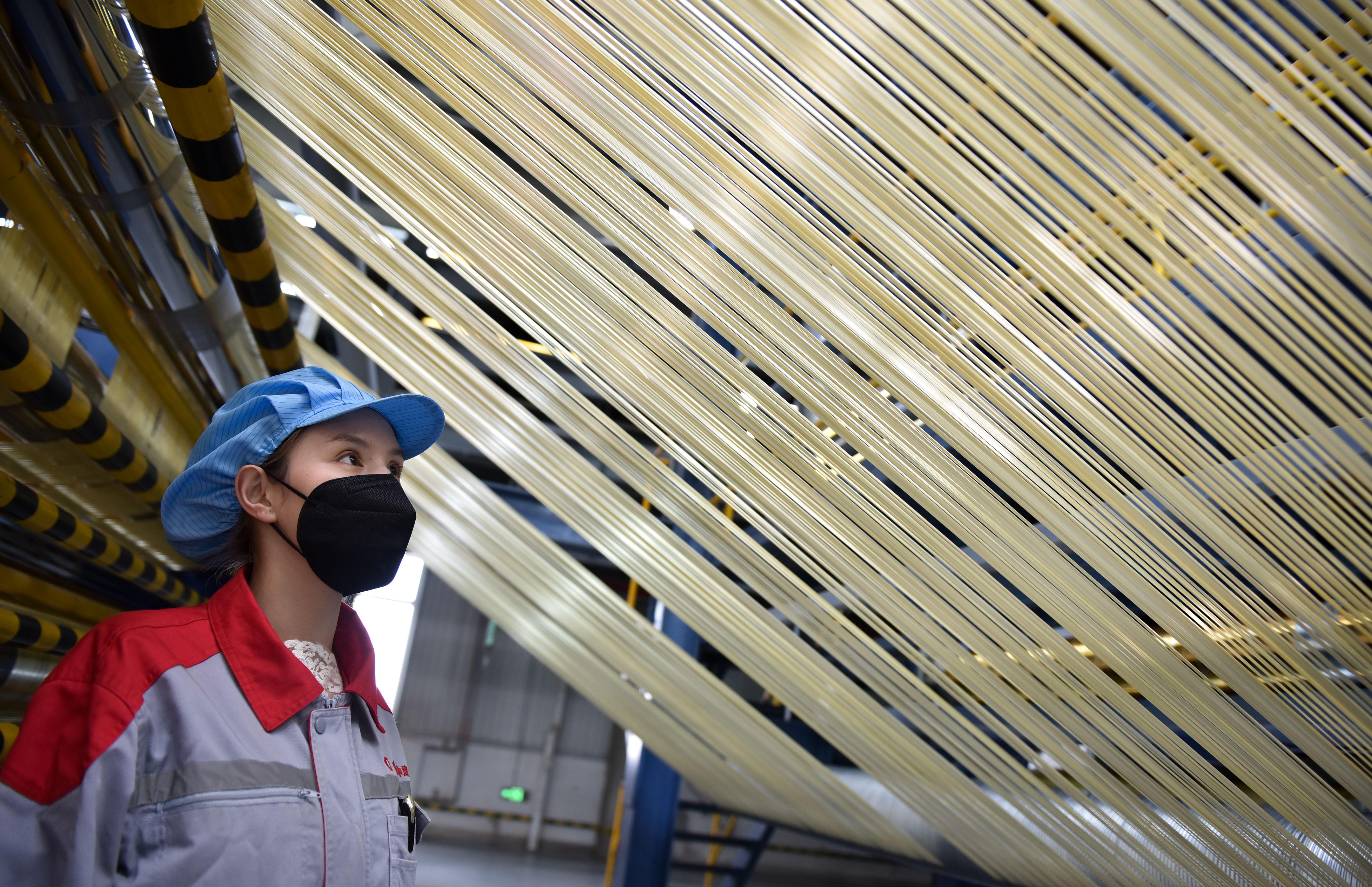 2月22日,在中复神鹰碳纤维西宁有限公司,工作人员在检查碳纤维原丝。 新华社记者 吴刚 摄