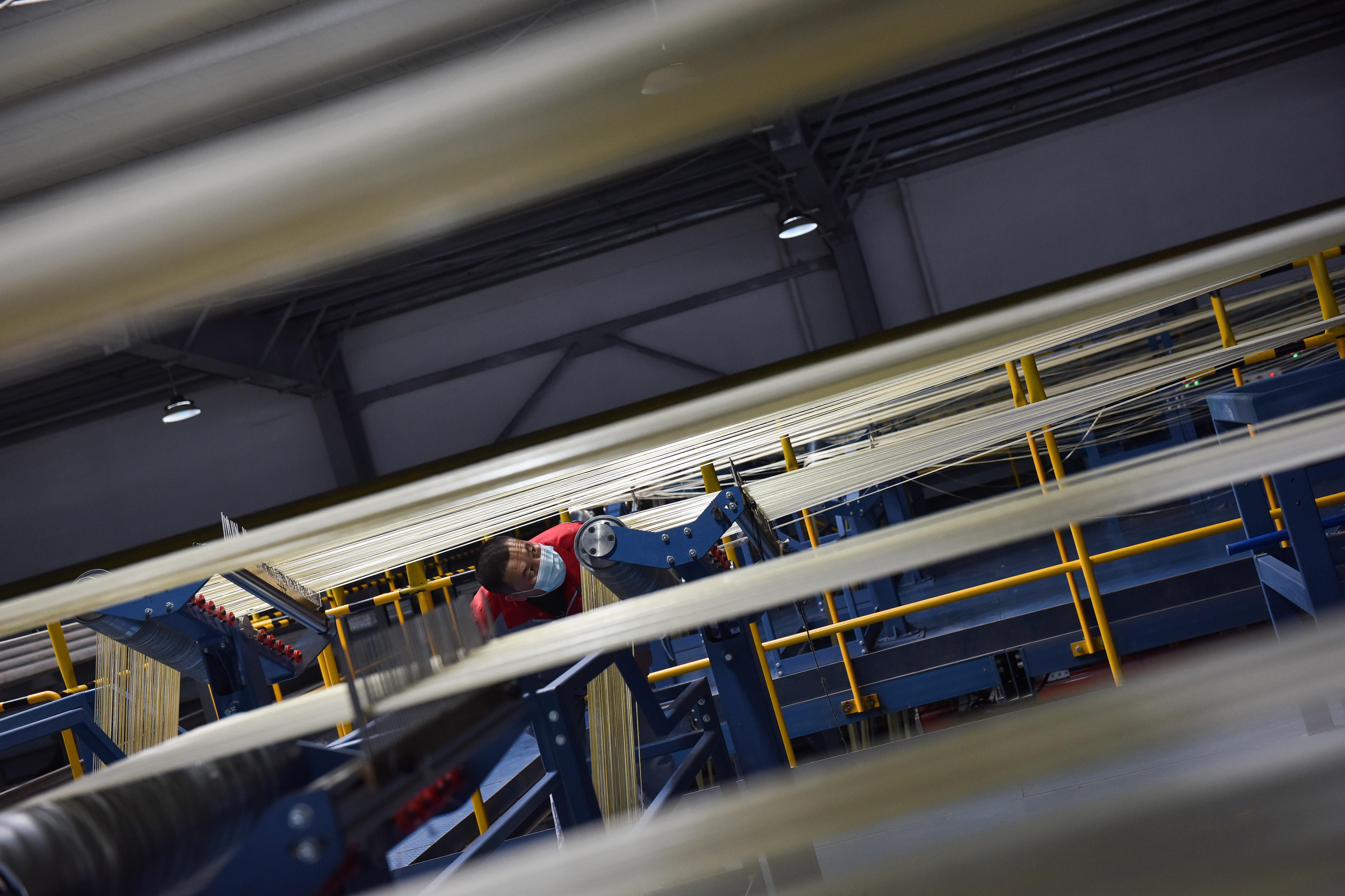 2月22日,在中复神鹰碳纤维西宁有限公司,工作人员在检查碳纤维生产线运行情况。 新华社记者 吴刚 摄