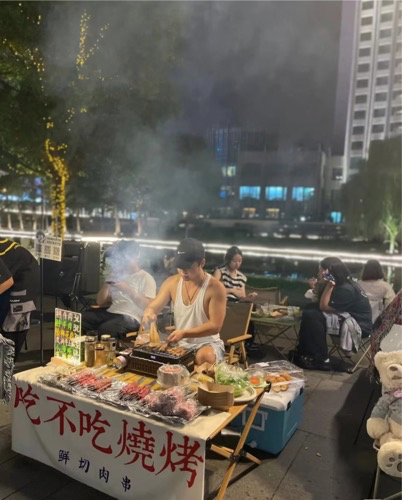 95后唛唛爸,曾经营着一家小型电商公司,因市场调整,他解散了公司的全部员工,自己偶尔接些散单业务,多了一些空余的时间。他表示:“最开始摆摊,只是抱着娱乐的心态”,当时刚好工作不太忙,赶上了苏州后备箱市集火爆出圈,他觉得好玩儿、自己烧烤手艺也不错,就入场开起了后备箱烧烤摊。