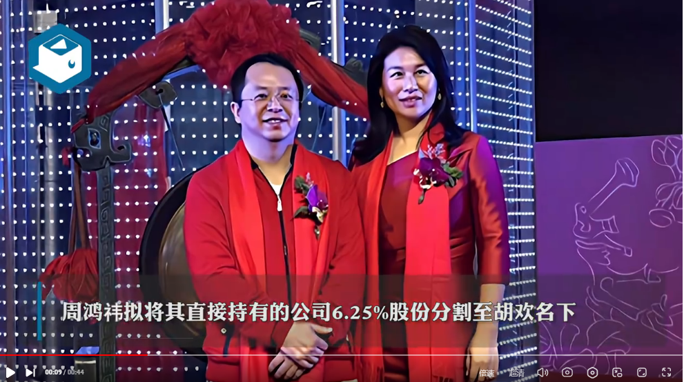 在本次权益变动前,周鸿祎直接持有三六零11.49%股权,其一致行动人天津奇信志成科技有限公司(以下简称“奇信志成”)持有三六零46.14%股权,周鸿祎持有奇信志成17.38%股权。以此计算,此次分割给胡欢的股份,似乎并未达到周鸿祎最终受益股份的一半。