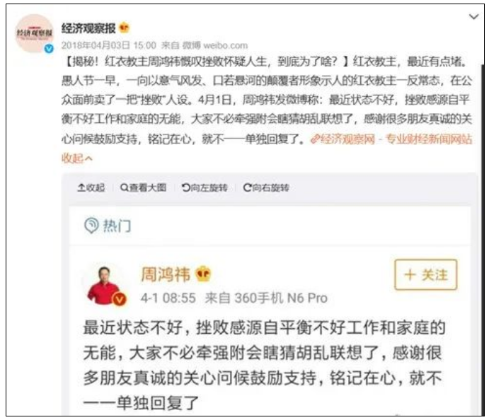 周鸿祎也多次表示,“太太是最好的选择”,“太太对我的事业帮助特别大”。他还劝创业者要多听听老婆的意见,有益身心健康。