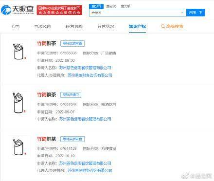 据报道,最近,“竹筒奶茶”成了奶茶界的新网红,在全国多地爆火。天眼查App显示,今年2月以来,多家名称含“竹筒奶茶”的个体工商户成立,包括城关区竹筒奶茶店、牡丹江市东安区遇见竹筒奶茶店、平塘县六禕禕竹筒奶茶店、大理市竹筒茶奶茶店等。此前,也有以“竹筒奶茶”命名的商户,包括桐乡市乌镇竹筒奶茶店、鹤山市沙坪大竹筒奶茶店等。此外,“竹筒茶”已被申请商标,该商标最近申请于今年1月底,申请人为上海一餐饮管理公司,国际分类为餐饮住宿,当前商标状态为申请中。“竹筒鲜茶”商标也被申请商标,申请人为苏州一餐饮管理公司,国际分类涉及广告销售、啤酒饮料等,当前商标状态为驳回复审。