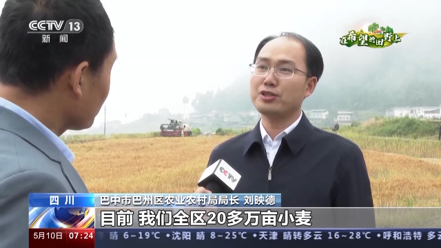 巴中市巴州区农业农村局局长刘映德:目前,全区20多万亩小麦已全面进入收割期,我们组织了700多台联合收割机,正全力抢收,确保颗粒归仓。