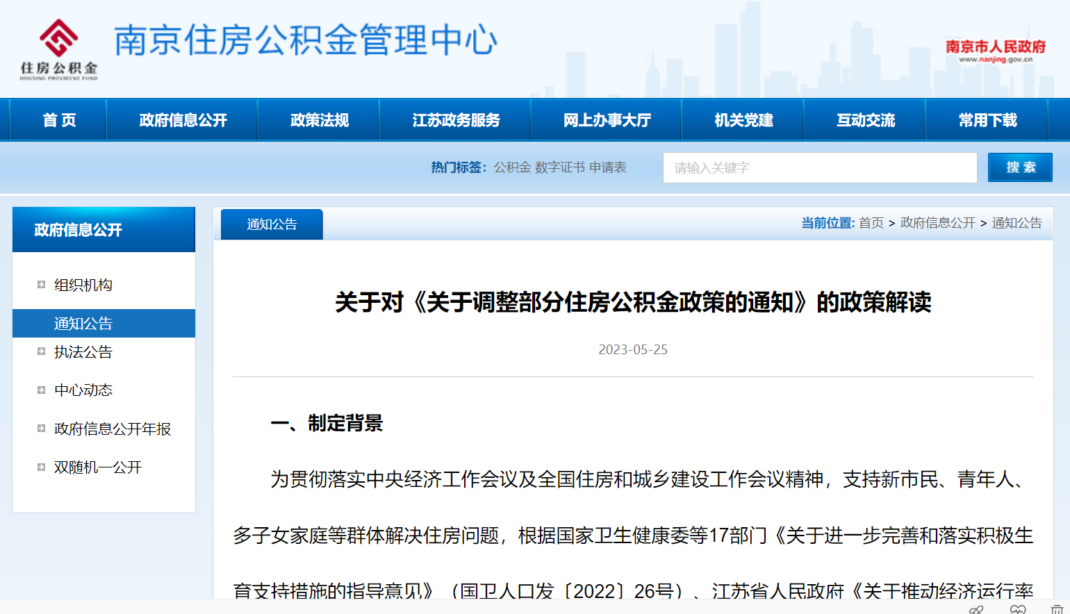 而南京住房公积金管理中心公布的《关于调整部分住房公积金政策的通知》(以下简称《通知》),表示将支持新市民、青年人、多子女家庭等群体解决住房问题,并将于6月1日起施行。