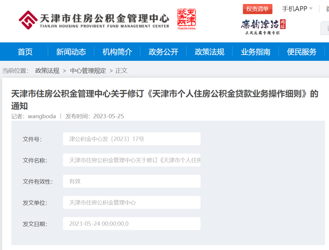其中,天津市住房公积金管理中心发布的《关于修订《天津市个人住房公积金贷款业务操作细则》的通知》(以下简称《细则》),主要是进一步简化了贷款资料,调整套数核定方法,并自2023年5月25日起执行。