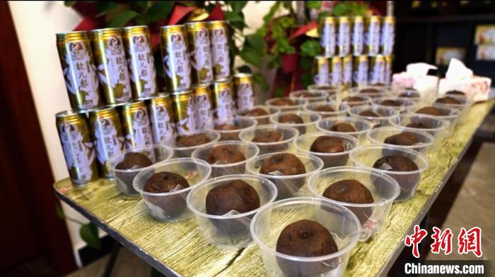 图为隆治乡生产的软儿梨饮品。 薛蒂摄