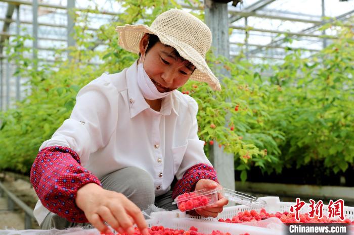 智能连栋温室里,红红的树莓挂在枝头。“温室内配套水肥一体化的种植系统,具保温、保鲜、防护功能,三个多月就能出一茬。”温室负责人常春介绍,成熟树莓去向不一:“鲜果销往上海、深圳等大城市,冻果则直供山东工厂,加工成果汁果酱。”