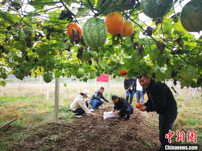 中新网湖州11月11日电 (谢盼盼)11月,正是吊瓜成熟季,成熟的吊瓜像一个个橘红色的小灯笼,十分喜气可爱。在浙江湖州长兴,吊瓜的成长迎来浙江大学最新研发的“新伙伴”——多功能马铃薯,通过强强联合,为当地农民实现增收。