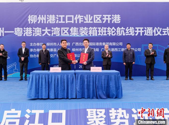 中新网柳州11月13日电(杨陈班玉珏韦诗婷)11月13日,伴随着一声长笛,满载着水泥集装箱的“兴港0066”轮顺利从广西柳州港江口作业区5号泊位出港,柳州港江口作业区开港运营,柳州—粤港澳大湾区集装箱班轮航线正式开通。至此,西部陆海新通道重要节点城市柳州集装箱班轮干支网络体系成型。
