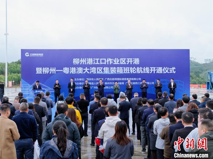 图为柳州港江口作业区开港暨柳州—粤港澳大湾区集装箱班轮航线正式开通仪式现场。龙启柏摄