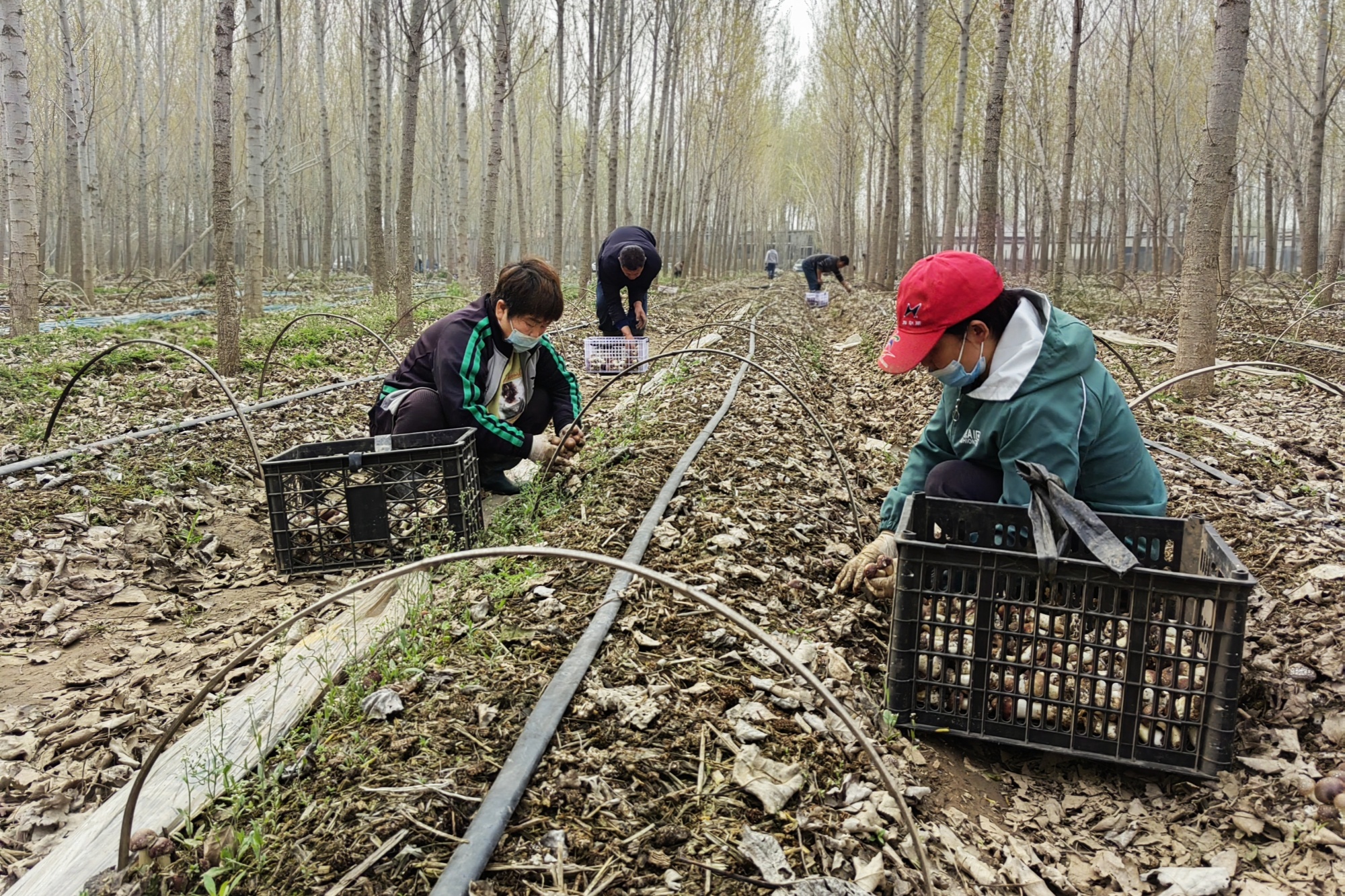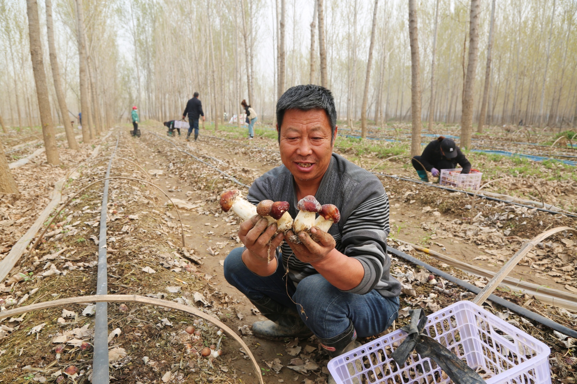 央广网保定4月10日消息(记者王艺霖)4月9日,走进河北省定兴县石柱村赤松茸种植基地,一朵朵、一簇簇赤松茸正不断从松针覆盖下的泥土里冒出头来,浑圆饱满,长势喜人。林下赤松茸迎来采摘销售“黄金期”,采摘的村民们手提篮筐穿梭其中,有条不紊地采摘、分拣、装车,一派繁忙景象。