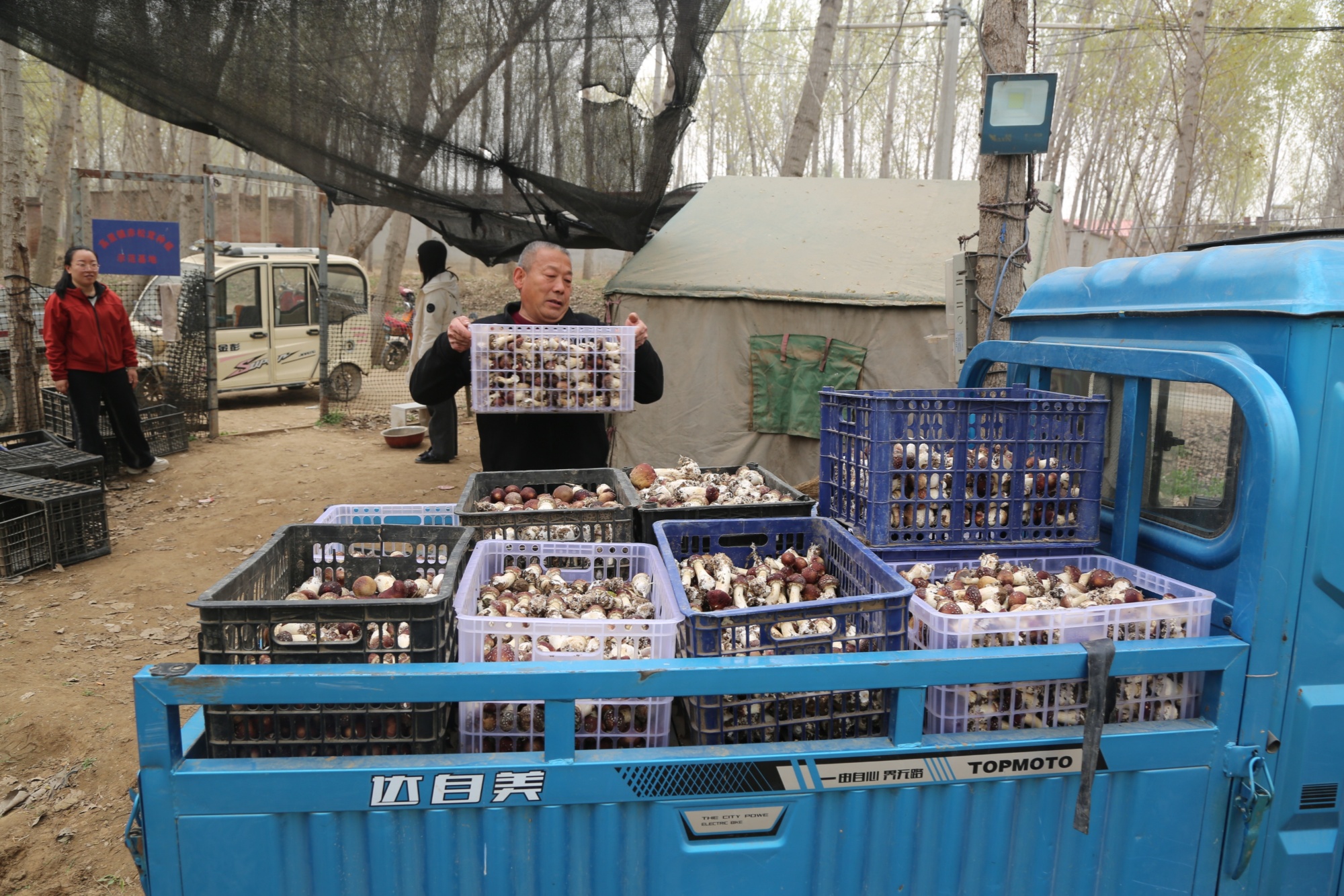 村民将码好的赤松茸装车(央广网发梁洁摄)