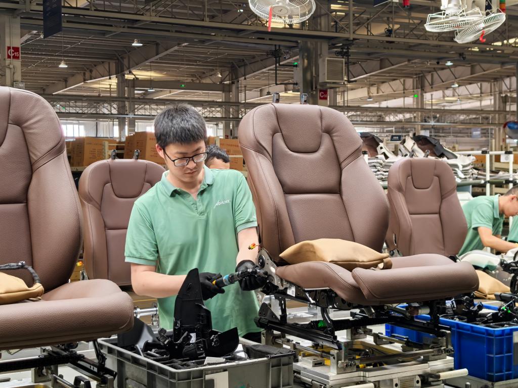 在安道拓(大庆)汽车部件有限公司,工人正在装配汽车座椅。新华社记者孙晓宇摄