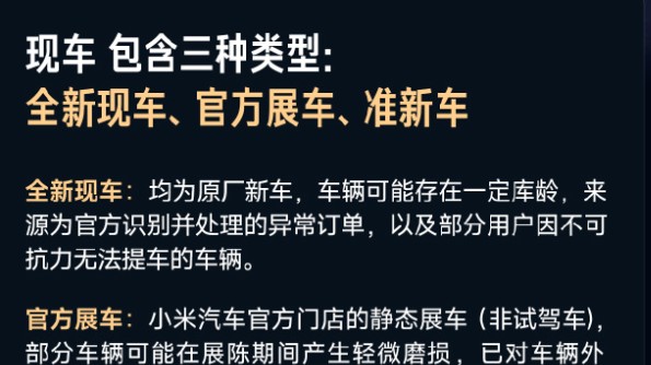 小米汽车官宣:新增“准新车选购”;曾因运输等原因产生维修项的原厂新车,已完成官方修复及售前附加检验红星新闻 2天前