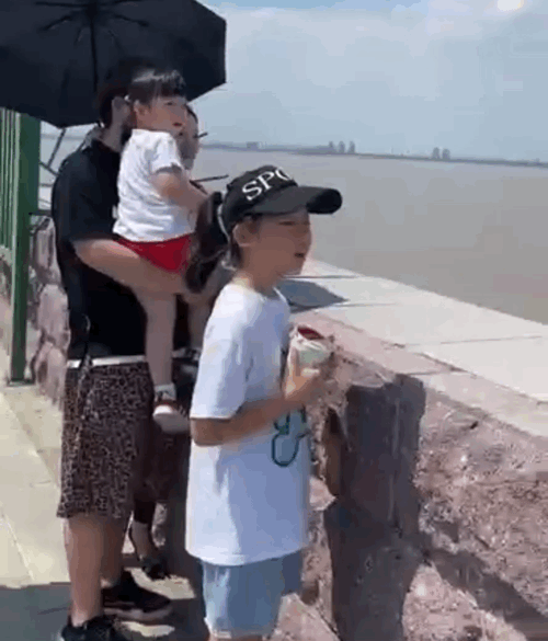 于是,他们又转战第二站:猪头角坝。“猪头角坝看潮的人更多,江堤由围栏围着,我们带着孩子躲在后面,也看到了小时候课本上潮头堆涌、惊涛拍岸的壮观场面。”