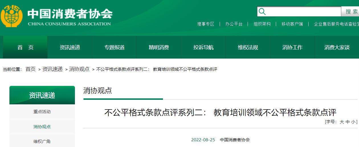 购买课程后,一经交付不退不换;因消费者个人原因不允许退费……不少消费者在购买教育培训课程时,在条款里看到这样的规定,或者被销售人员口头告知。这种规定真的合理吗?8月25日,中消协在官网发布《不公平格式条款点评系列二:教育培训领域不公平格式条款点评》。根据《“不公平格式条款”消费者认知及线索征集调查报告》,中国消费者协会邀请中消协律师团律师对消费者反映强烈的教育培训领域不公平格式条款进行点评。来看看隐藏在教育培训格式条款里的那些“坑”。