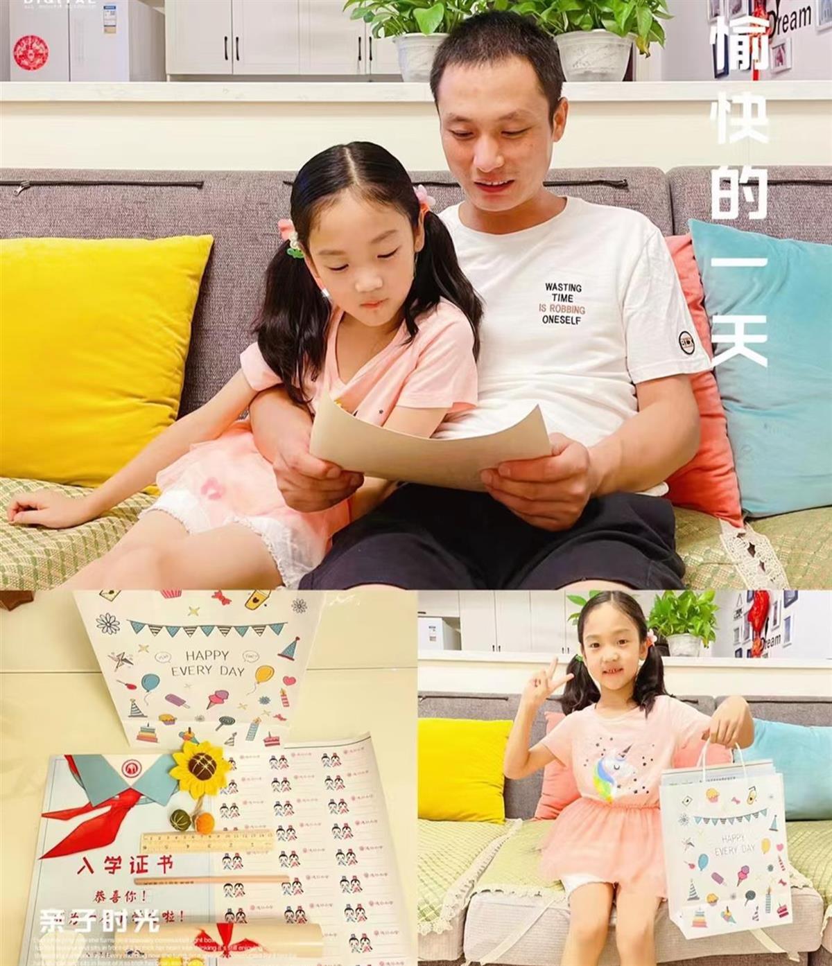“孩子一回来,就迫不及待地向我展示她新学期收到的‘宝贝’!说今天班主任老师、高年级的大哥哥、大姐姐带她参观了校园,熟悉了校园环境。还跟我汇报今天在学校学习制作自己的姓名牌。感谢学校老师的用心,点燃了孩子们在新学校的学习热情和信心。”一年级1班新生曾若雪的家长说。