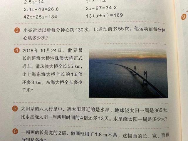 数学教材充满时代感 高铁速度、港珠澳大桥成为素材