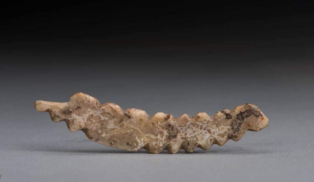 这是河南郑州双槐树遗址出土的牙雕蚕(资料照片)(郑州市文物考古研究院供图)