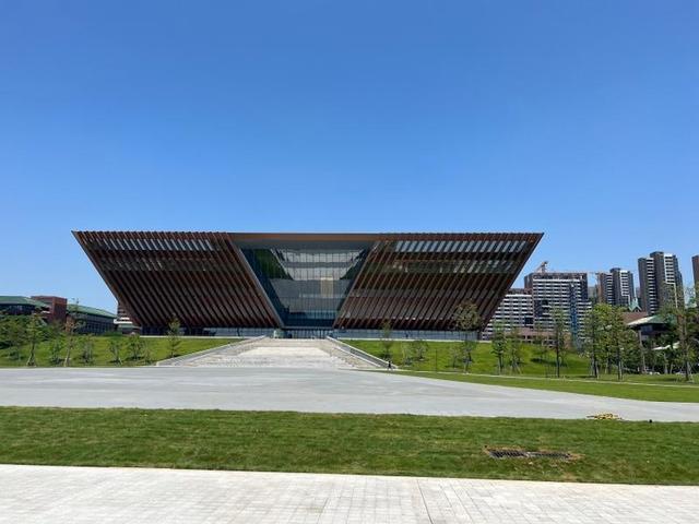 图书馆建筑面积约5.2万平方米,外观像一顶博士帽,寓意“知识之冠”,馆内取“山谷幽深、包罗万象”之意,布局山谷之态,曲折有致,名为“书山智谷”。这是校园生活区与教学区空间转换的枢纽,更是精神性的象征,为广州国际校区建立了一个交流凝聚、求知创造的归属空间。