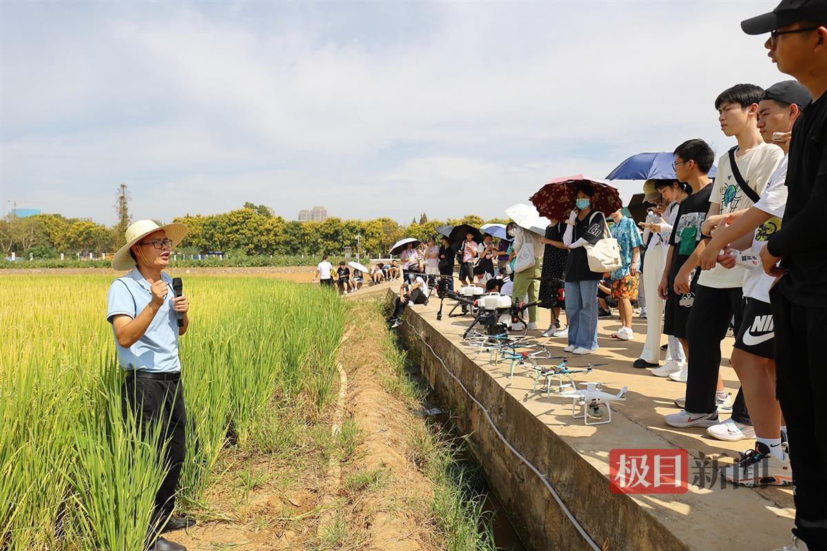 方才观摩无人机和田间机器人“种田”,旋即品鉴现代工艺葡萄酒;探下手去触摸鳄雀鳝,攀上高科技“大黄蜂”体验农机驾驶……9月7日,华中农业大学4700余名新生分57个组,在140余名教师指导下,在15个教学科研基地之间跨学科体验29个学科专业之趣。